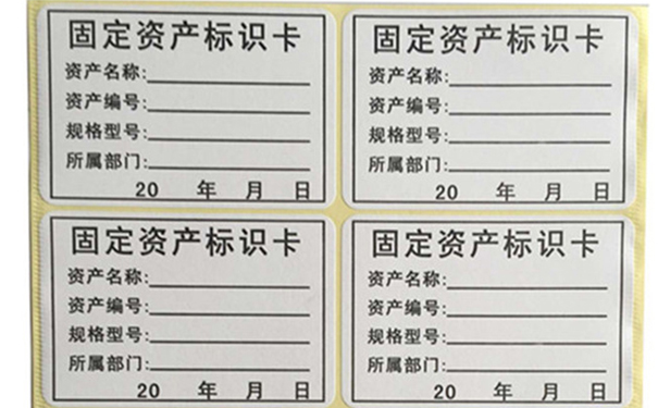 固定資產(chǎn)標(biāo)簽是用于區(qū)別固定資產(chǎn)的一種特定標(biāo)識(shí);資產(chǎn)標(biāo)簽上一般有資產(chǎn)名稱、資產(chǎn)編號(hào)、規(guī)格型號(hào)、所屬部分、相關(guān)日期等信息。固定資產(chǎn)標(biāo)簽又稱固定資產(chǎn)標(biāo)簽紙,固定資產(chǎn)管理標(biāo)簽,固定資產(chǎn)標(biāo)簽貼等。